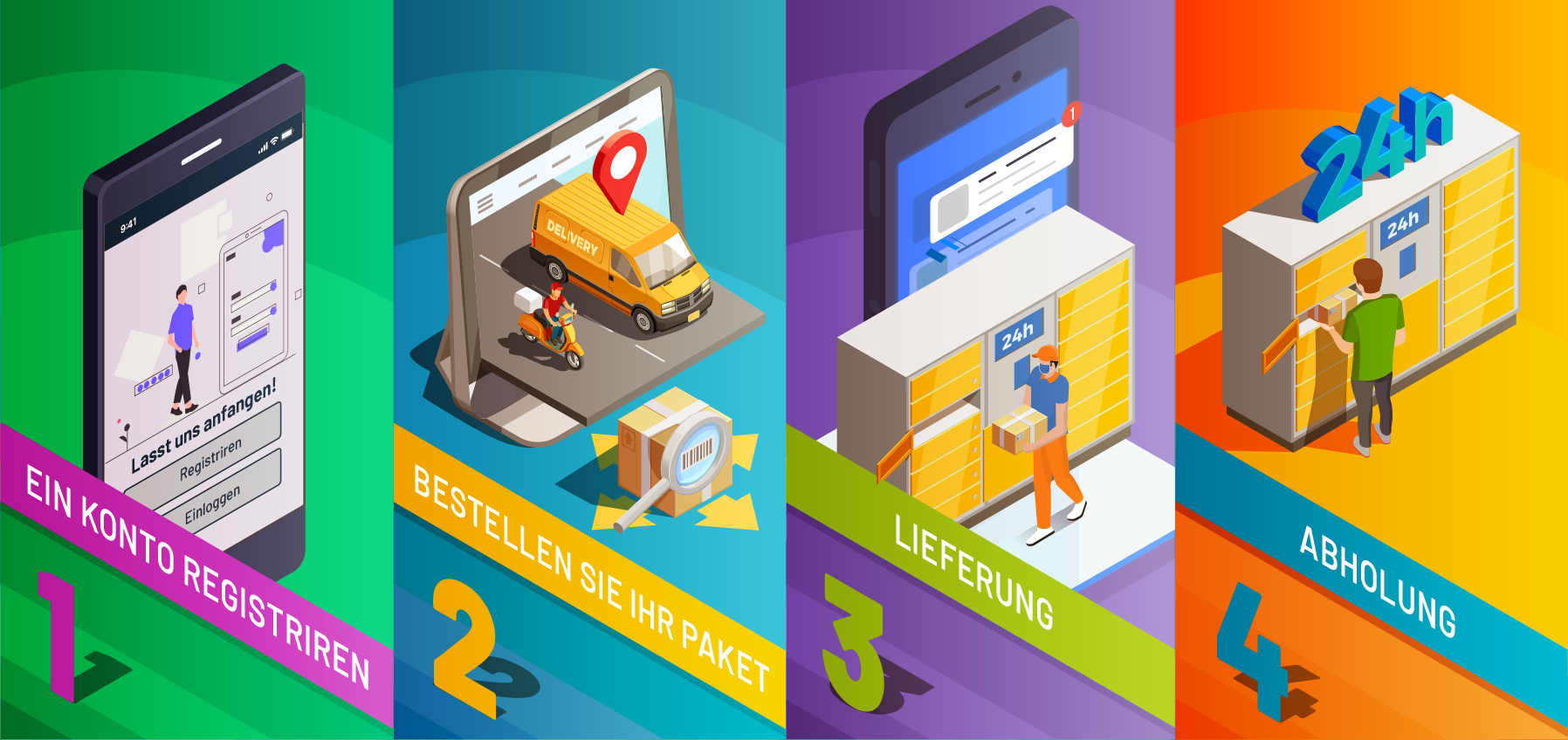 - Verwenden Sie den Abholcode oder den QR-Code in Ihrer E-Mail, um Ihr Paket abzuholen.